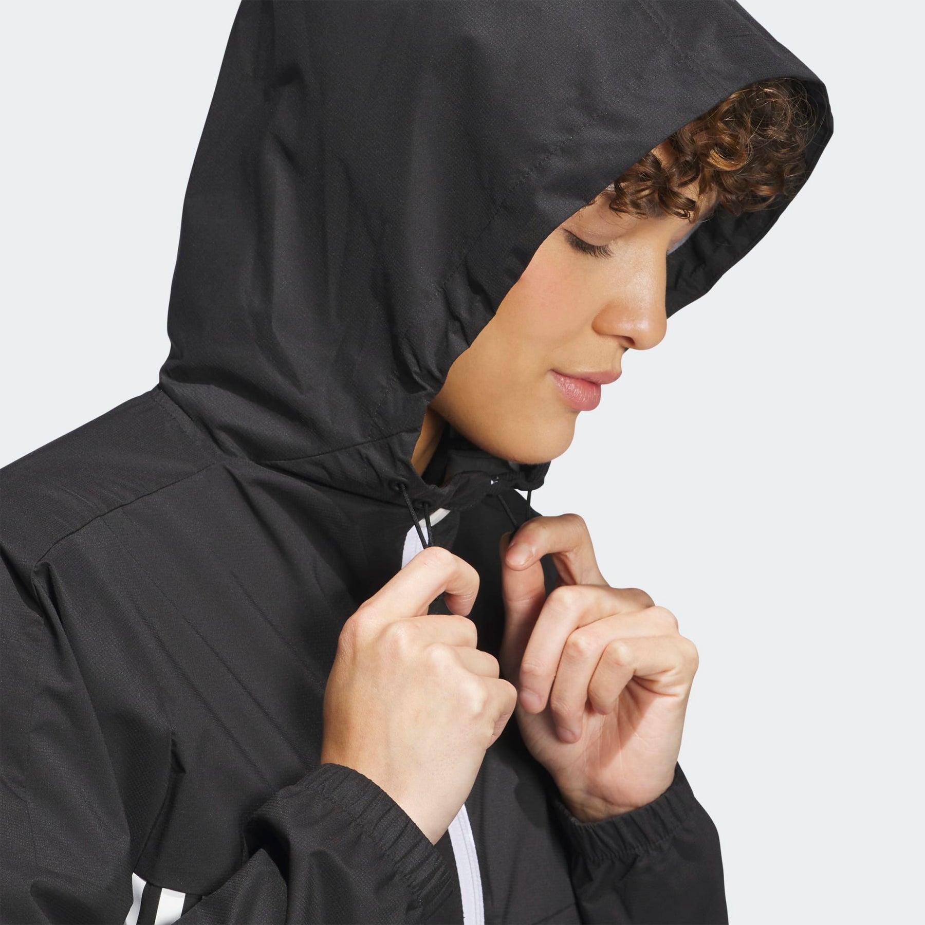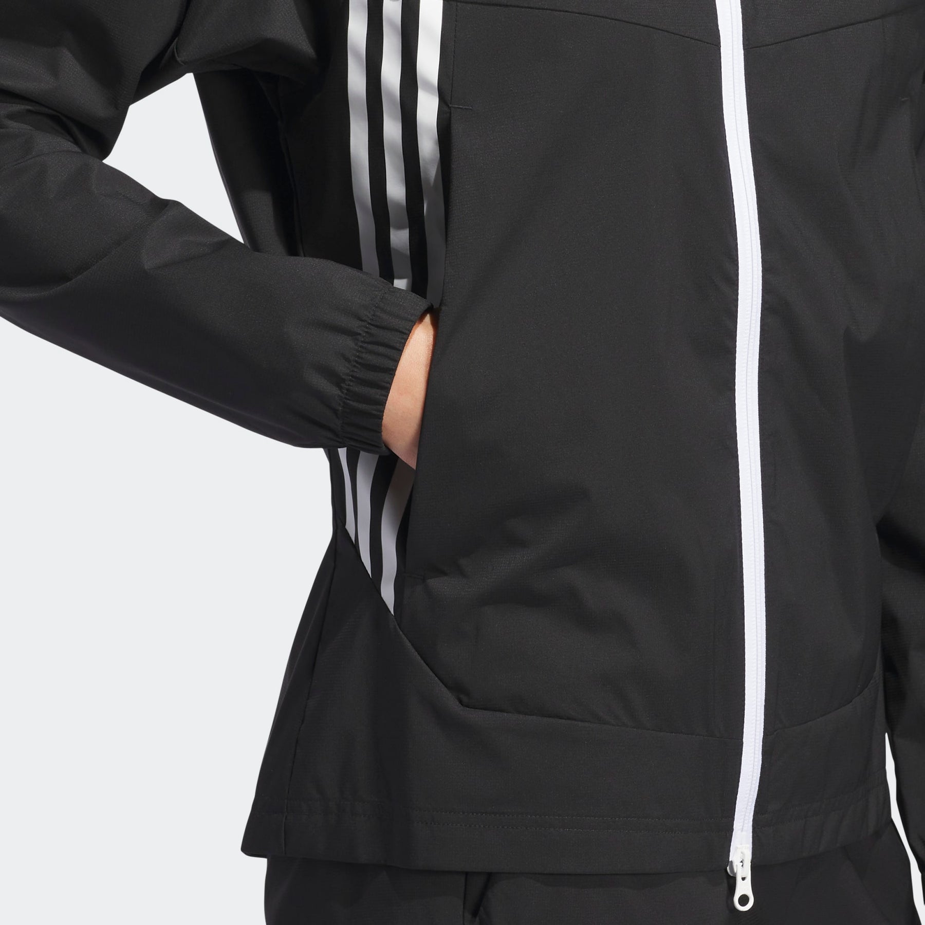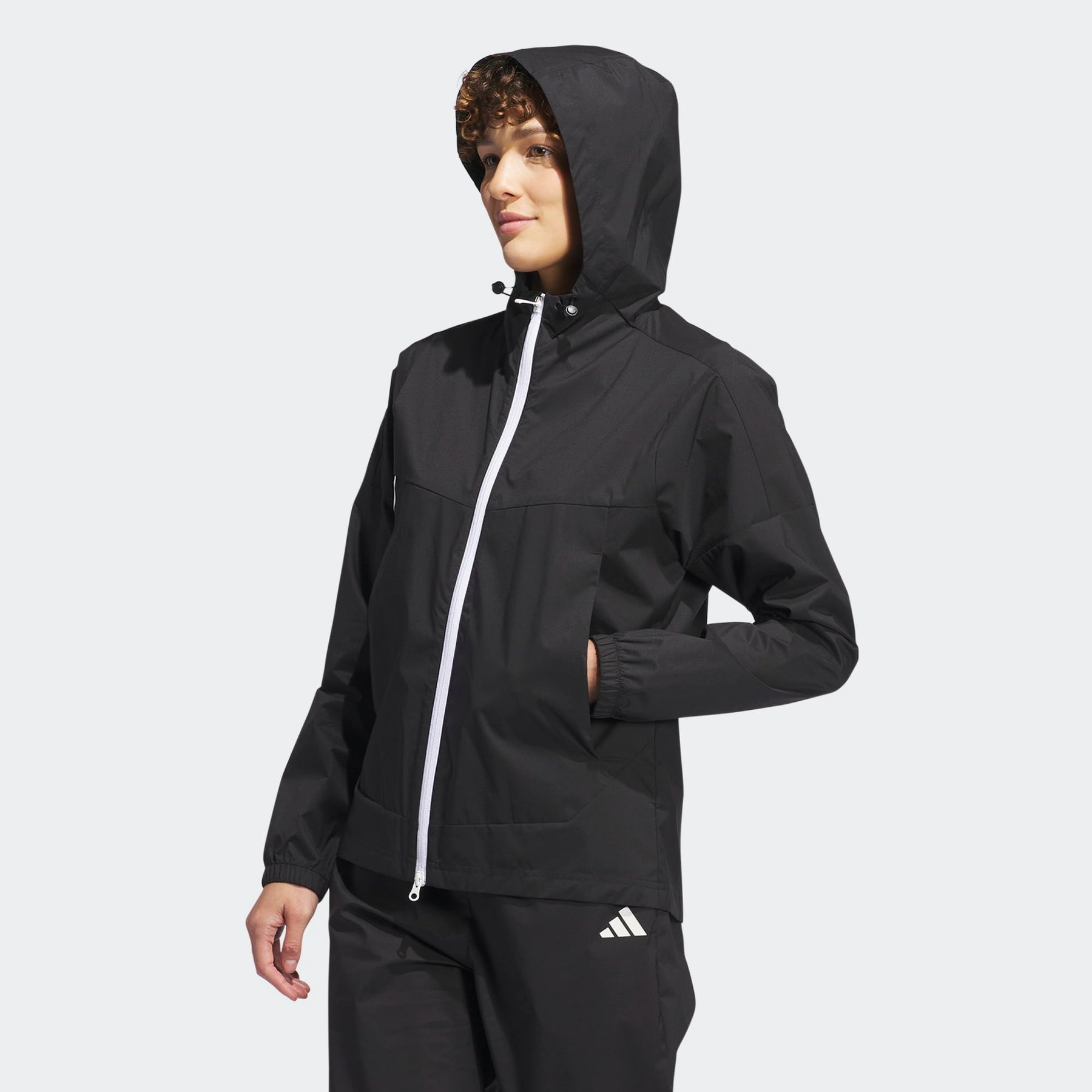 - Full zip with drawcord-adjustable hood