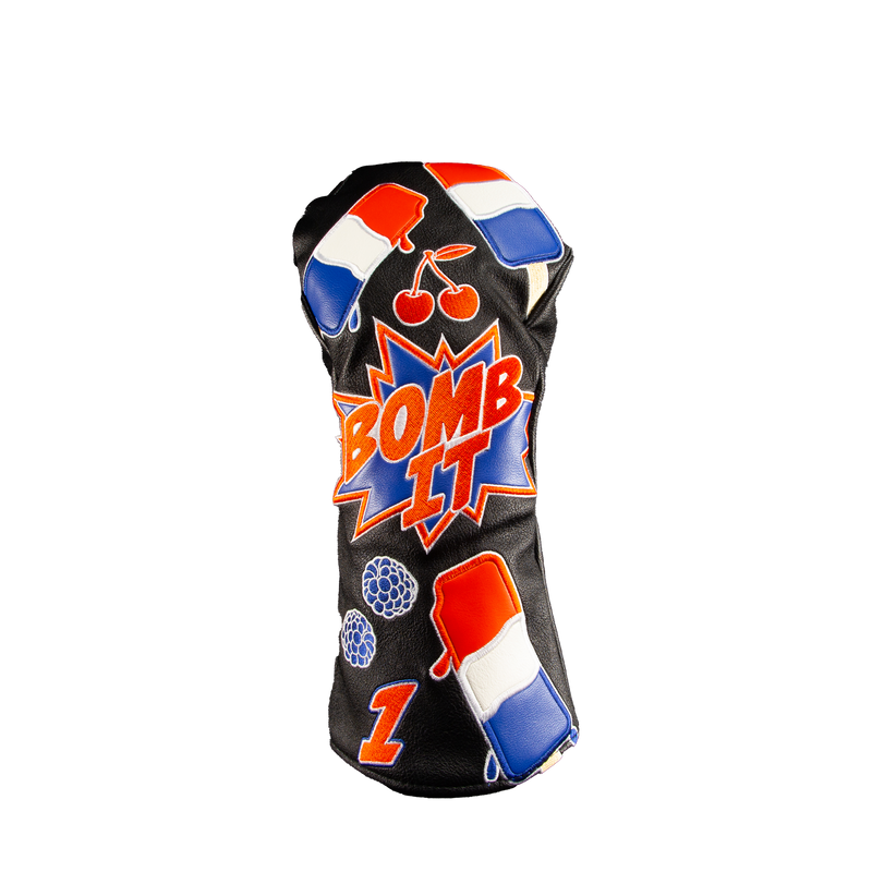 Our TOUR QUALITY embroidered BLACK BOMB-IT DRIVER COVER, has great styling, fit and craftsmanship with plush lining and beautiful embroidery.