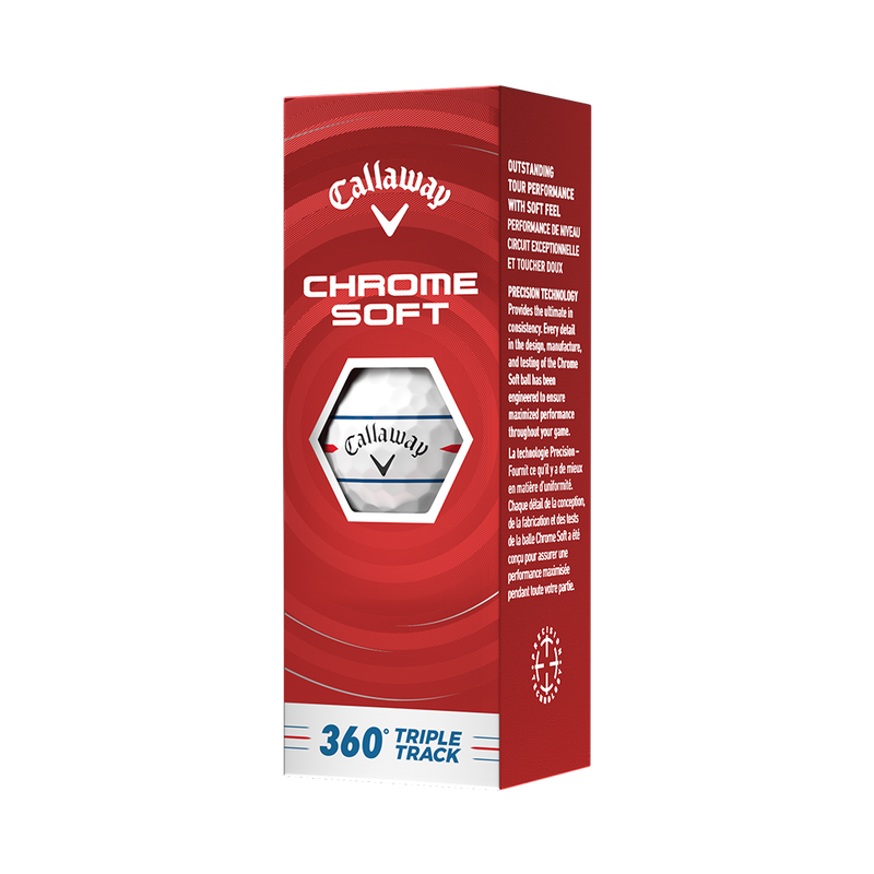 Chrome Soft is engineered for outstanding tour performance with new speed technology for players who want fast ball speeds, higher ball flight, greenside control and soft feel. Plus, alignment-enhancing 360 Triple Track technology on a high visibility yellow ball.