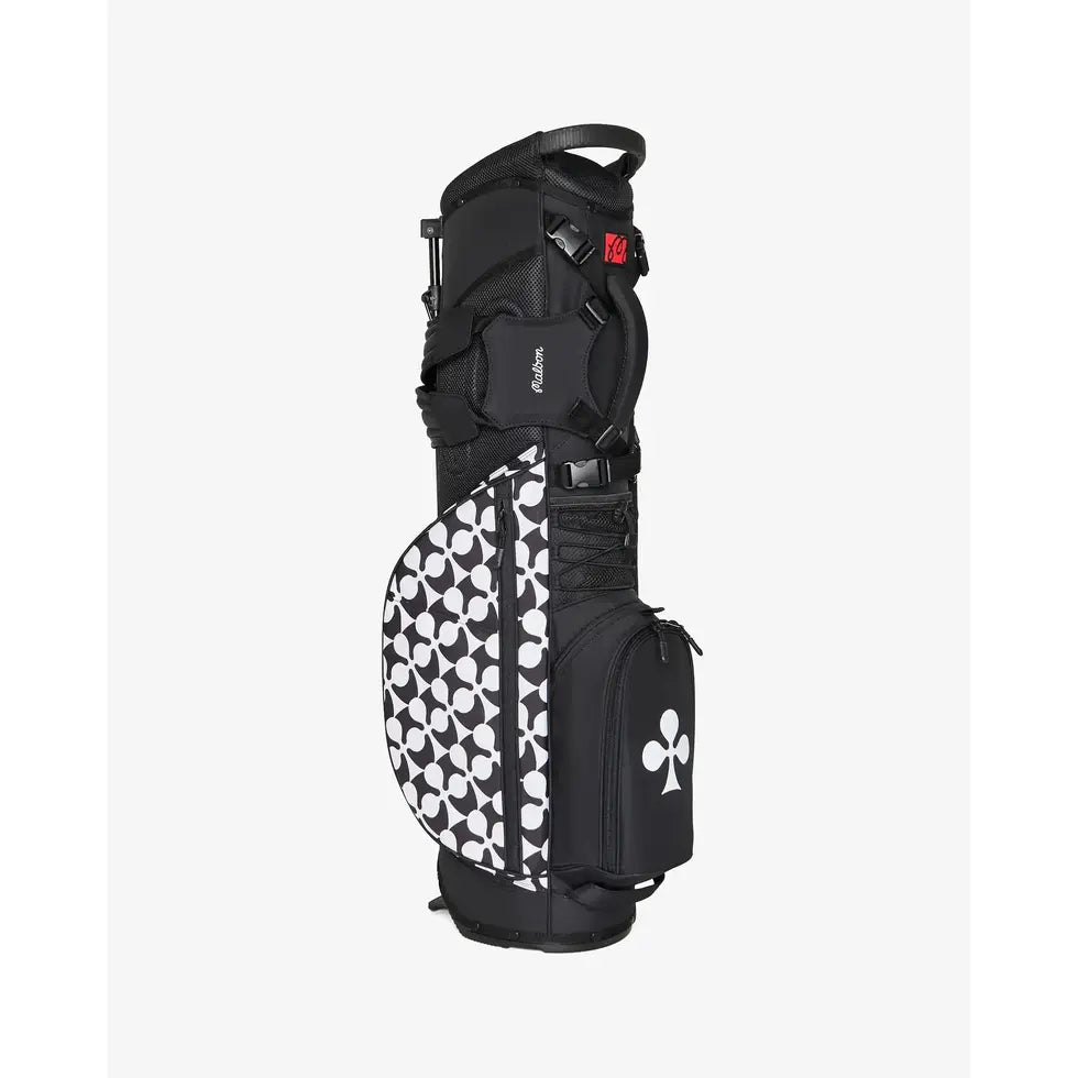 Showcasing signature embroidery from FW25, our Members Walking Bag is crafted from durable nylon rip-stop fabric, ensuring it can handle all your adventures on the course. It features multiple zippered pockets, including a convenient mesh rangefinder pocket and a magnetic closure pocket on the front for quick access to essentials. With a lightweight design—under six pounds—and cross back straps with clips, this golf bag provides maximum comfort for all-day rounds.