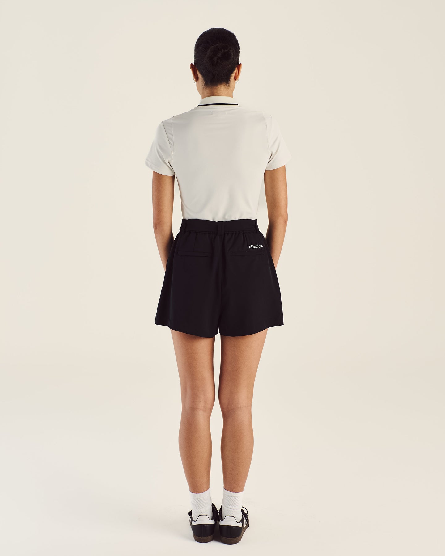 - Embroidered Malbon script logo at left chest
